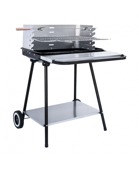 Grill został wyposażony w chromowany, regulowany ruszt, który można ustawić na jednej z czterech wysokości nad paleniskiem.