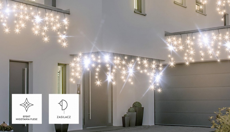 Kurtyna Bulinex sople 100 LED to elegancka i dynamiczna dekoracja świetlna, która dzięki efektowi flesza oraz możliwości łączenia zestawów idealnie nadaje się do tworzenia imponujących dekoracji na zewnątrz i wewnątrz budynków. Ciepłe i zimne światło w połączeniu z nowoczesnym wyglądem sprawi, że każda przestrzeń nabierze wyjątkowego, świątecznego klimatu.