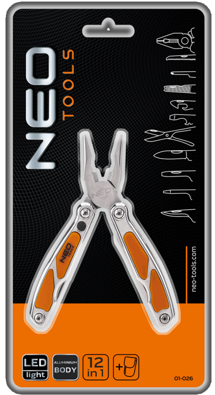 Wysokiej klasy innowacyjne narzędzie wielofunkcyjne. W tym jednym niepozornym narzędziu znajduje się 13 różnych funkcji. Produkt umieszczono w praktycznym etui, wykonanym z wytrzymałego nylony.