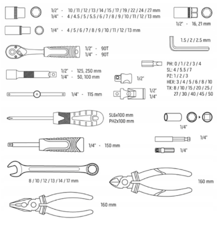 NEO Zestaw narzędzi klucze nasadowe M4K garage 90 el. Limitowany zestaw
